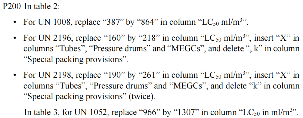 与此同时,对P003、P004、P005、P006、P130、P144、P408、P801、P903、P905、P906、P907、P909和P910共计十四个包装指南增加类似下方的注: