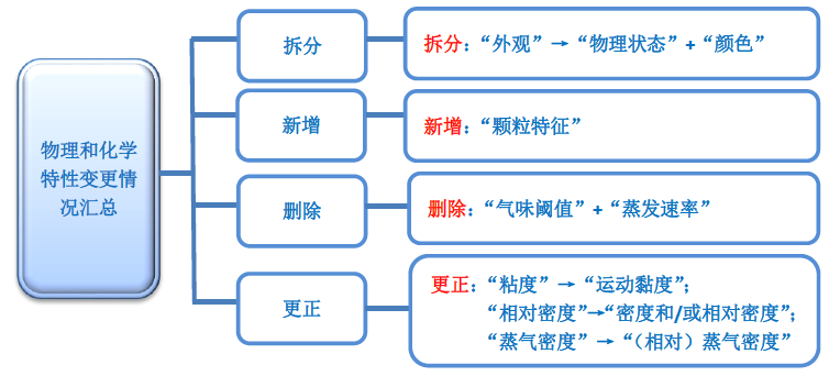 根据新制度中附件4相关说明,安全数据单中第9节标题由“物理和化学特性”更正为“物理和化学特性及安全特征”。因此在实施新制度之后,技术人员在编制安全数据单时需依照最新要求对该节标题作出相应变更。