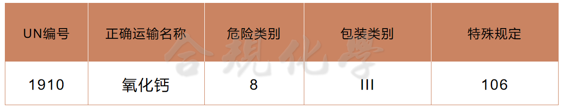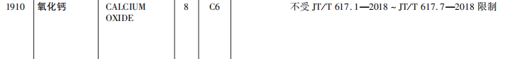 在国内公路运输时,依据JT/T617.3-2018的规定,氧化钙也是不受该标准的任何限制,按照普货运输。