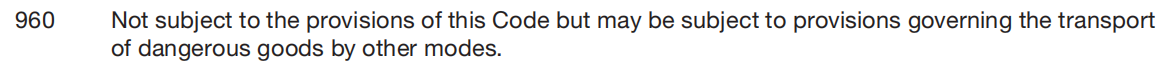 而且在海运IMDG code法规中,UN1910有一个海运特有的特殊规定“960”,也同样强调了,氧化钙在海运时是不受法规限制的。