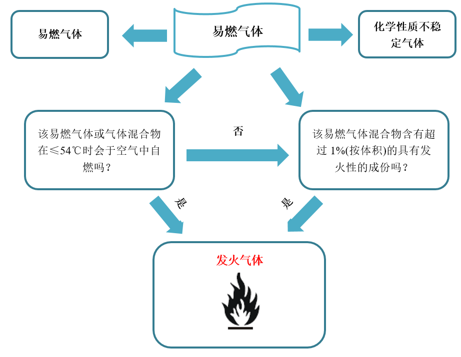 友情提醒:在判断一个易燃气体是否为发火气体时,如该物质已通过试验符合发火气体定义则分为发火气体。然而即便未做过试验,但是气体中含有超过1%的发火组分,则同样直接分类为发火气体。