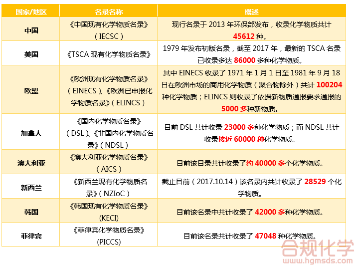 表1中的相关正向名录,合规化学在此前的技术解读中已做过相关普及,具体可点击查看“ 全球现有化学物质名录小百科 ”。