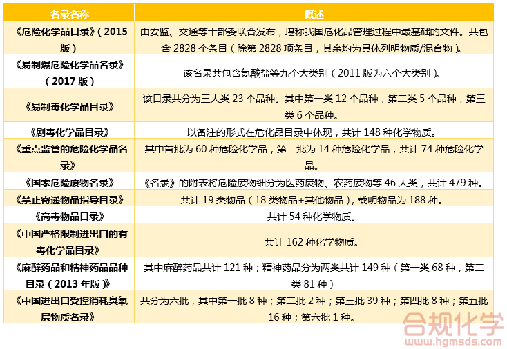 在我国,很多部委对化学品的管理都采取的是目录管理制度,因此负向名录的数量也非常的多,而其中最重要的一些名录主要为以下几种,如表2所示。