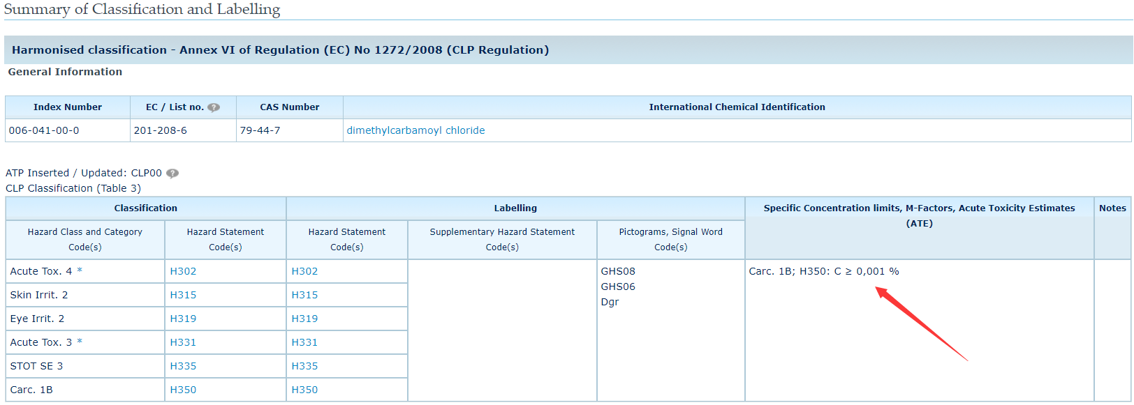 ① 组分列入统一分类表(CLP法规附件VI第3部分)中,且浓度超过其中的特定浓度限值,例如图3所示。