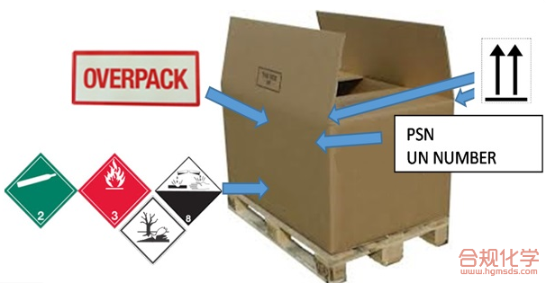如果EQ包件和非EQ运输的DG包件放在一个OVERPACK中,则在OVERPACK表面还需加贴类似图2所示的非EQ运输的危险货物标记和标签。