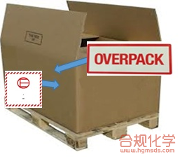 对于仅装有EQ包件的集合包装,其外表面仅需要加贴图1所示的特殊Mark和“OVERPACK(高度≥12mm)”标记,如图3所示。