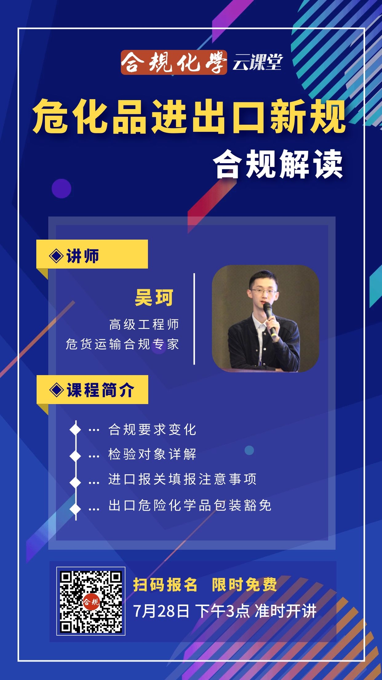 本期云课堂,合规化学带来“危化品进出口合规新规要点解读”直播课,8月28日,下周三下午3点,线上直播,我们不见不散哦~