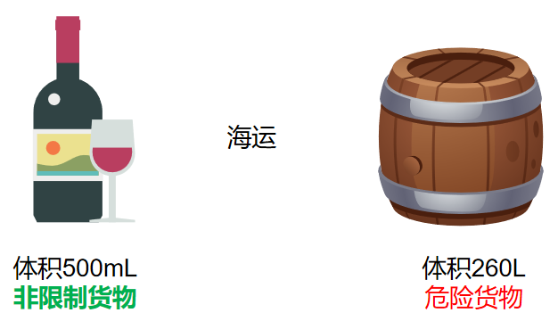 再比如,酒精含量56%的白酒,属于联合国TDG法规中的UN3065,III类包装。但是,根据特殊规定145,如果此类白酒在以海运运输时,如果单个包装的体积不超过250L,则可以按照非限制货物。