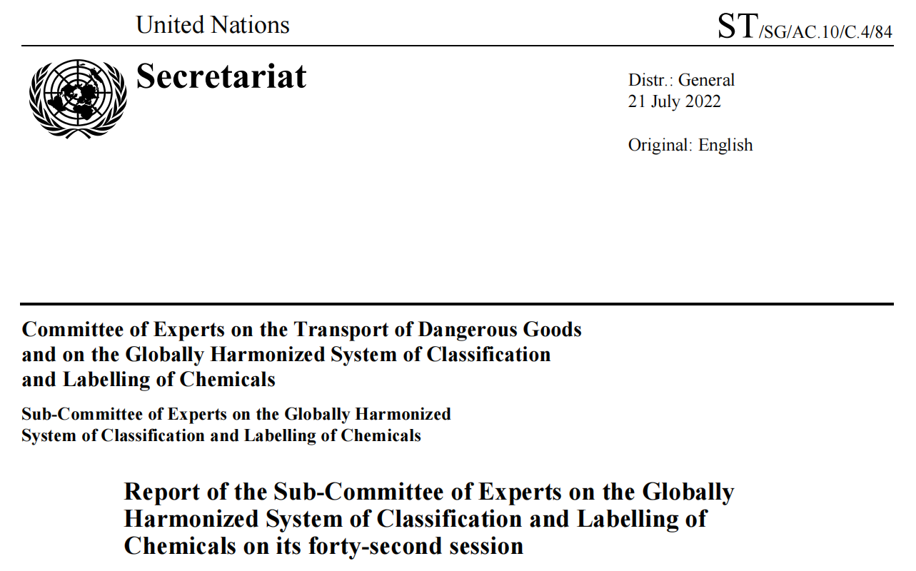 联合国GHS专家委员第42次会议已于2022年7月6~7月8日在日内瓦顺利举行。7月21日,本次会议的报告正式发布,如图1所示。