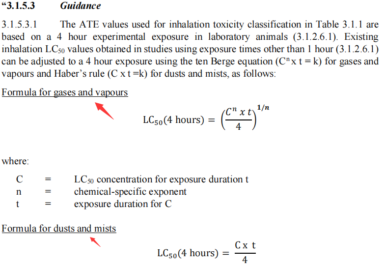 友情提醒:该提案还明确了图2所示公式仅限于暴露时间在30min~8h的吸入毒性数值。其它时间的吸入毒性是否可以采用上述公式,需要由主管机关决定。